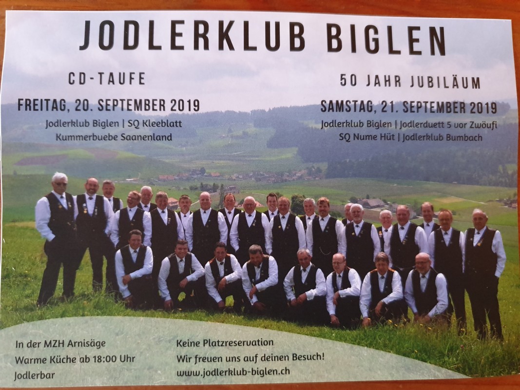 Herzliche Einladung zur CD-Taufe und zum 50 Jahr Jubiläum vom Jodlerklub Biglen