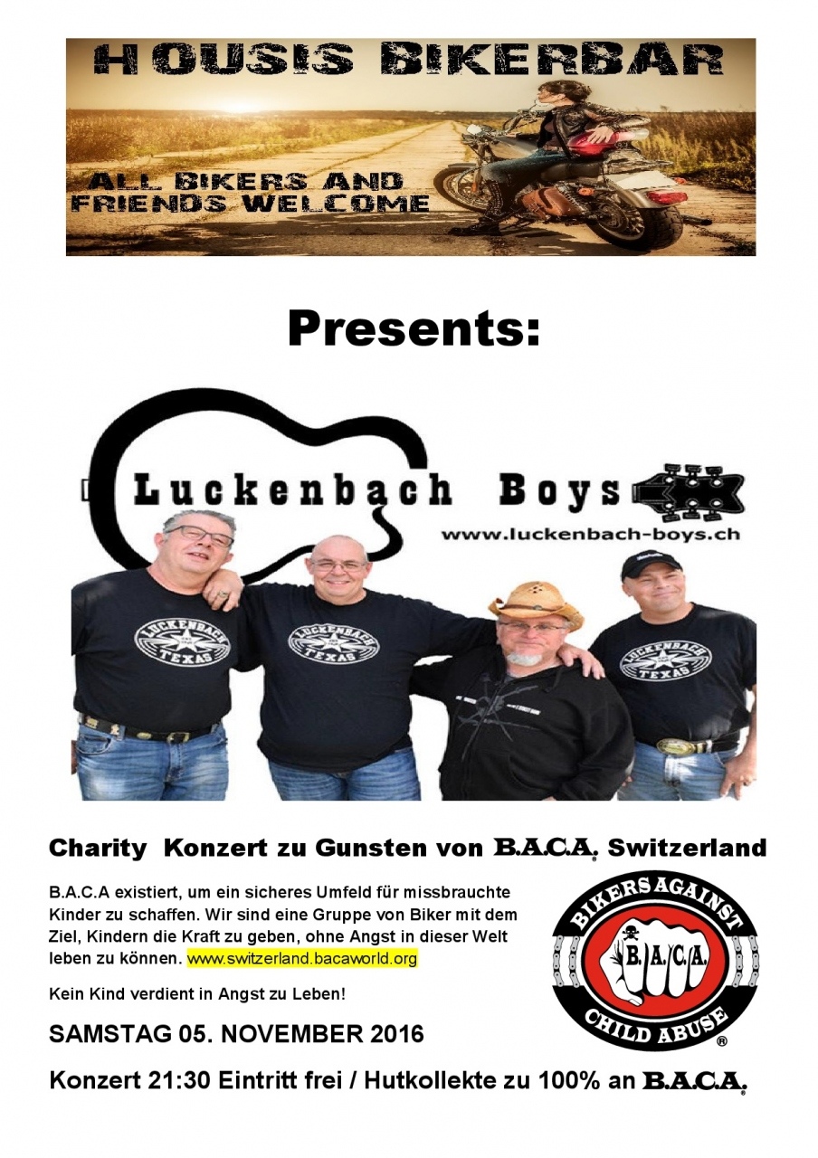 Charity Konzert der Country Band Luckenbach Boys zugunsten von B.A.C.A. Switzerland