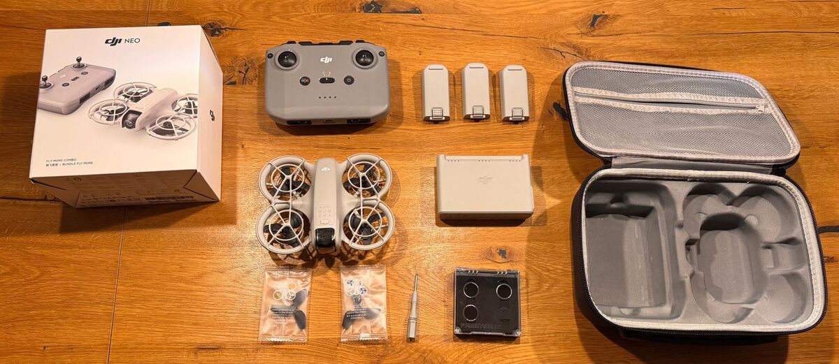 Zum Verkauf steht eine DJI Neo mit Fly More Combo in sehr gutem Zustand (Dezember 2024 gekauft). Enthalten sind die originale box eine Tragetasche sowie drei ND-Filter. Die Drohne wurde äusserst selten genutzt und wird aufgrund von Nichtgebrauch abgegeben.