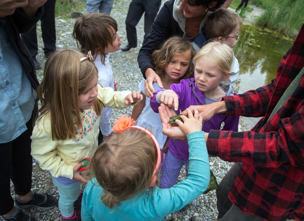 Das Schulzimmer im Freien: Fröschli streicheln in der Kiesgrube Rubigen