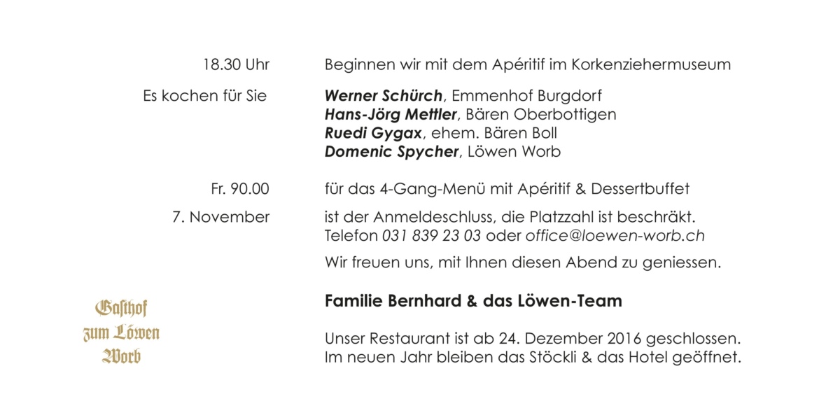 Telefon 031 839 23 03 oder office@loewen-worb.ch