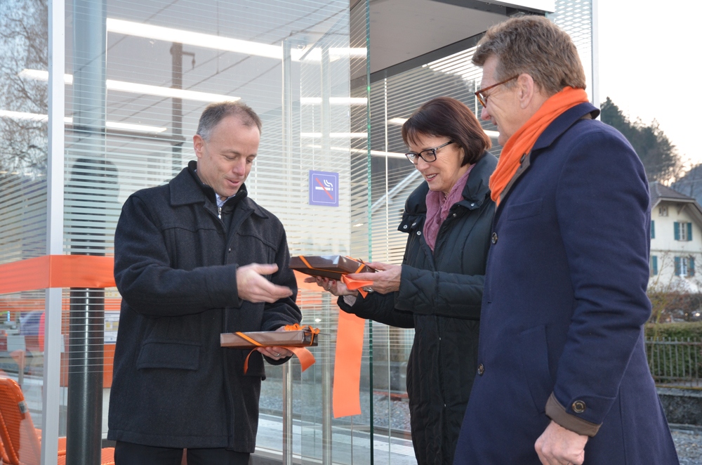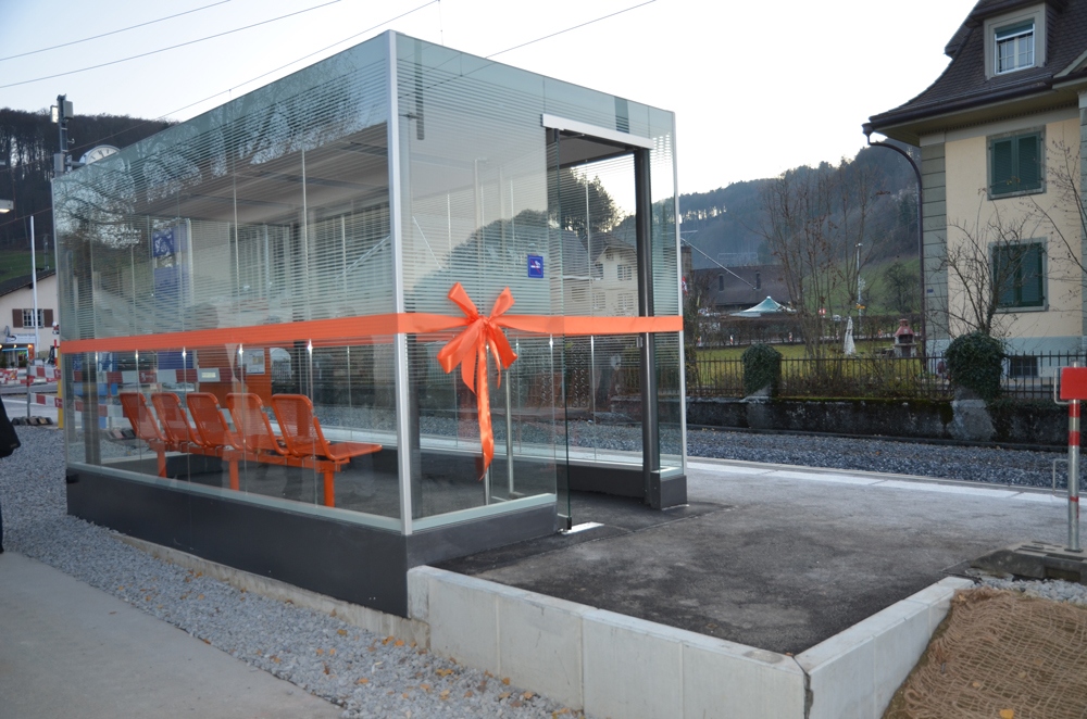 Seit dem 6. Oktober ist der neue Bahnhof Deisswil in Betrieb, Ende November wurde die Wartehalle aufgestellt. Diesen Meilenstein feierten die Verantwortlichen des RBS zusammen mit Gemeindevertretern am Dienstagnachmittag.