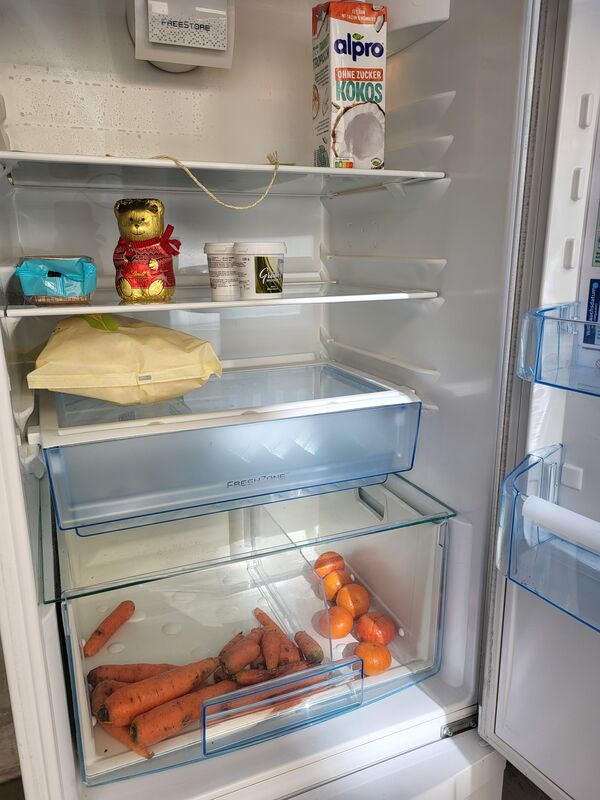 Gemäss Aussagen von Unbeteiligten ist der Kühlschrank «immer leer». So sind wir dankbar für alle, die ab und zu oder regelmässig Lebensmittel hineinstellen. Es braucht keine teuen Markenartikel und schon gar keine Luxusartikel – aber es liegt im Sinn der Sache, gesunde Lebensmittel zu spenden wie Gemüse, Früchte oder Milchprodukte. Oder aber solche, die sonst verderben würden – etwas in den Kühlschrank stellen ist sinnvoller als wegwerfen.