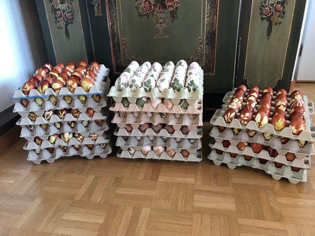 [i] Sie wollen auch so schöne Eier färben? Im BERN-OST-Bericht von 2017 kann man Ruth Winzenried in Videos über die Schulter blicken.