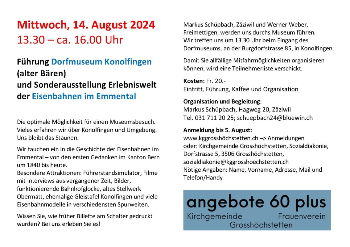 Dorfmuseum Konolfingen - Eisenbahnen des Emmentals - angebote 60 plus