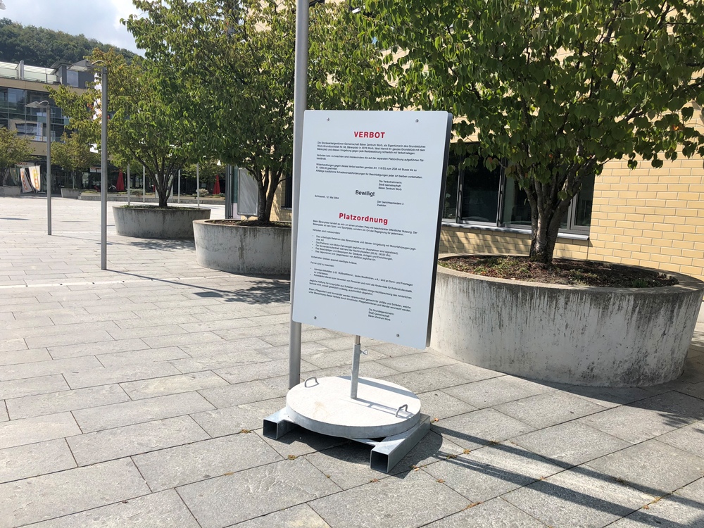 Auch der Bärenplatz im Zentrum von Worb war ursprünglich als Begegnungsort vorgesehen. Heute herrscht Leere. Und Stille. Obwohl die Platzordnung lärmige Aktivitäten oder "lärmenden Aufenthalt" nur an Sonn- und Feiertagen und zwischen 22 und 6 Uhr verbietet. Verhindert wurden in den letzten Jahren etwa ein Street Soccer Turnier der Jugendarbeit und das Schachspiel, das ein ansässiger Gewerbetreibender zur Belebung des Bärenplatzes installieren wollte.