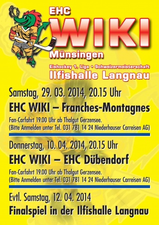EHC Wiki-Münsingen: Restliche Heimspiele in Langnau