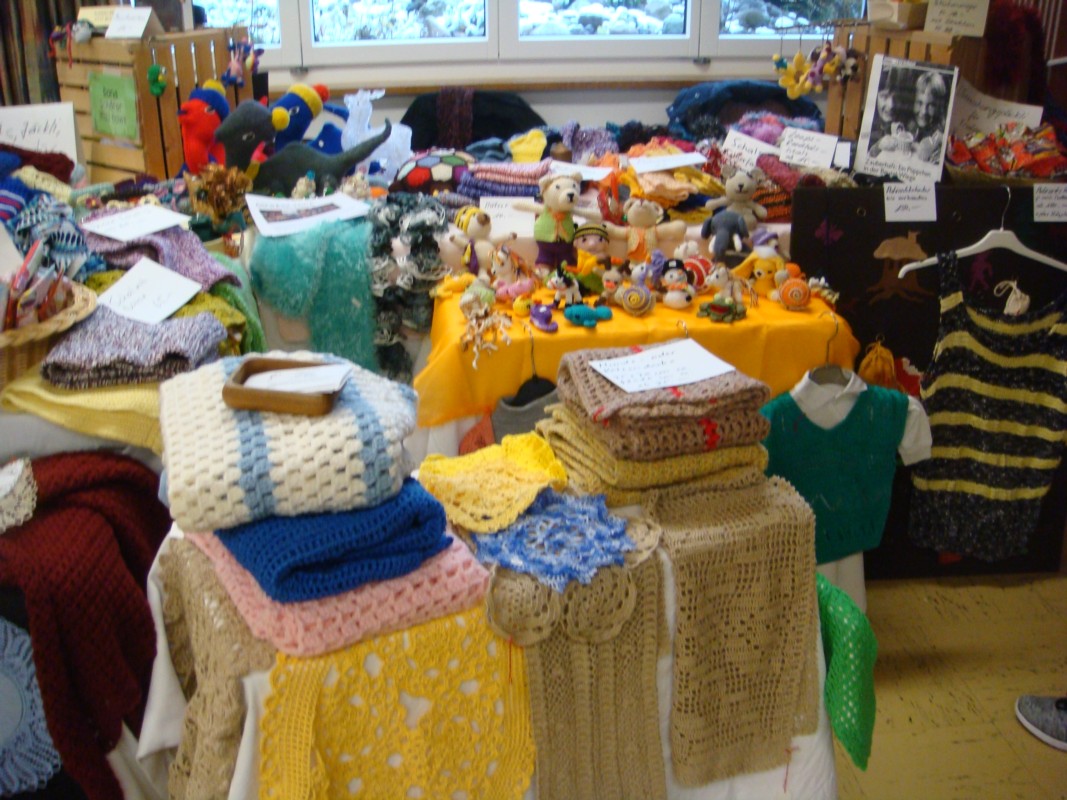 Unter den vielen Angeboten finden Sie neben Adventstellern, Adventsgestecken in diversen Formen und Grössen, eine grosse Auswahl an verschiedener Handarbeiten, gestrickt oder gehäkelt.