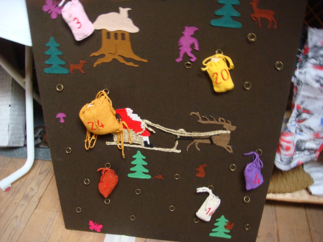 Schöner Adventskalender mit 24 gehäkelten Wundertäschli.