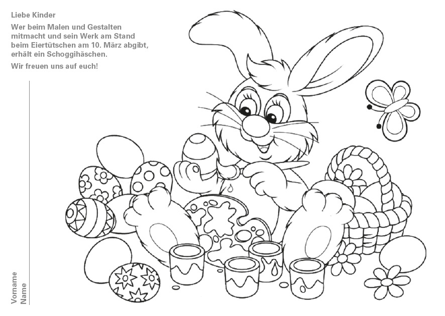 Wer beim Malen und Gestalten mitmacht und sein Werk am Stand beim Eiertütschen am 10. März abgibt, erhält ein Schoggihäschen.