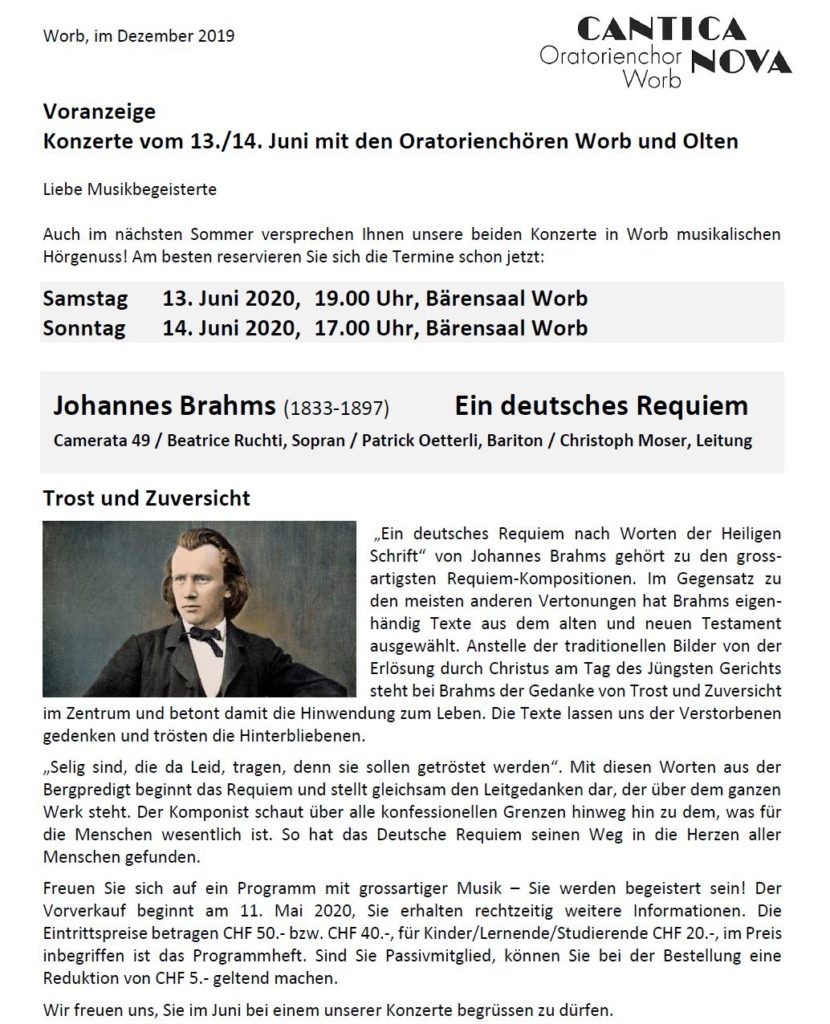 Ein deutsches Requiem nach Worten der Heiligen Schrift von Johannes Brahms
