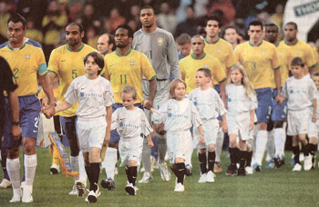 Einmarsch mit Brasiliens Captain: Kleiner Luca mit grossem Cafu
