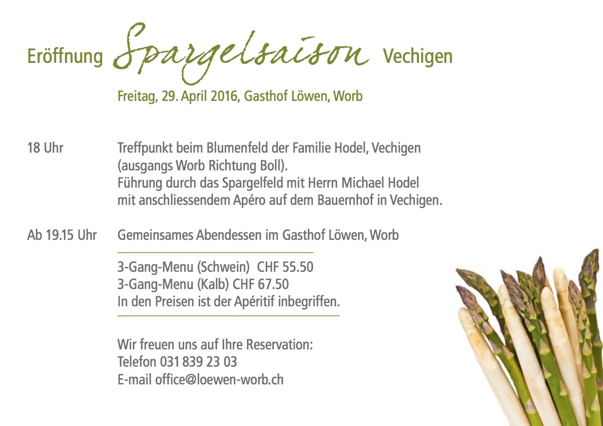 Eröffnung Spargelsaison Vechigen im Gasthof Löwen Worb