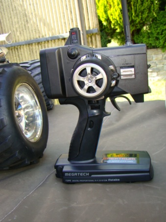 Steuerung: FUTABA Megatech 3Pk 40 MHz, 80 Frequenzen, die Steuerung sucht sich selbst eine "freie" aus. 10 Speicherplätze(verschidene Modelle)
