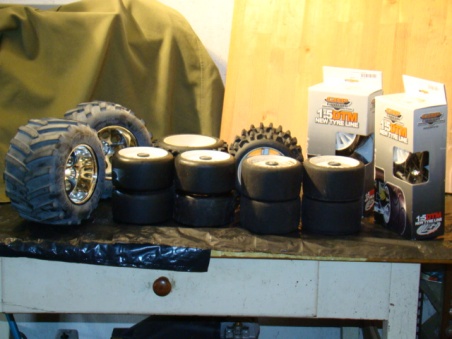 Viel Zubehör: total ca.6 Komplett-Räder, Zahnräder, Sturz-Spur Einstellehre etc.