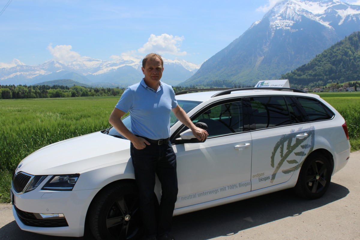 Unterrichtet wird nämlich seit 17 Jahren mit einem Erd-/Biogas betriebenen Fahrschulauto. Seit über einem Jahr unterrichtet Fahrlehrer Matthias Sterchi mit 100% Biogas im Tank und somit CO2-neutral. Das Biogas stammt von der ARA Thunersee. Für den Fahrunterricht stehen ein geschalteter Skoda Octavia, CNG Turbo und ein Seat Leon, TGI Turbo mit Automatikgetriebe zur Auswahl.