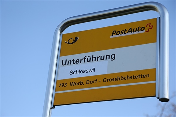 Manch einer rätselte, was es wohl mit dieser Tafel auf sich habe. Das Rätsel wurde im «Verschiedenen» gelöst. Ein erboster Bürger: «Ich habe schon mehrmals darauf aufmerksam gemacht, dass die Postautohaltestelle bei der Unterführung beim Gwattli auf Schlosswiler Boden ist.» Es gehe nicht an, dass unter der Haltestellenbezeichnung «Unterführung» der Gemeindename «Grosshöchstetten» stehe.