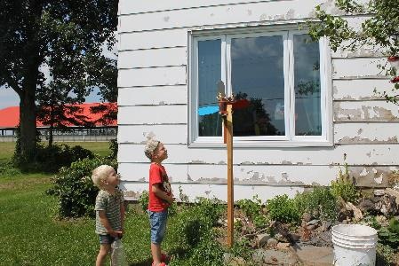 Kurz nach der Ankunft unserer Sachen haben wir das Päckli vorsichtig geöffnet und etwas wunderschönes kam zum Vorschein: Mein Vater hat uns zur Erinnerung ein Windrad gebastelt! Es hat etwas länger gedauert, bis es einen Platz gefunden hat aber jetzt ist es zusammengebaut und funktioniert einwandfrei. Merci, Grösu u Gros. Mir hei fescht fröid!