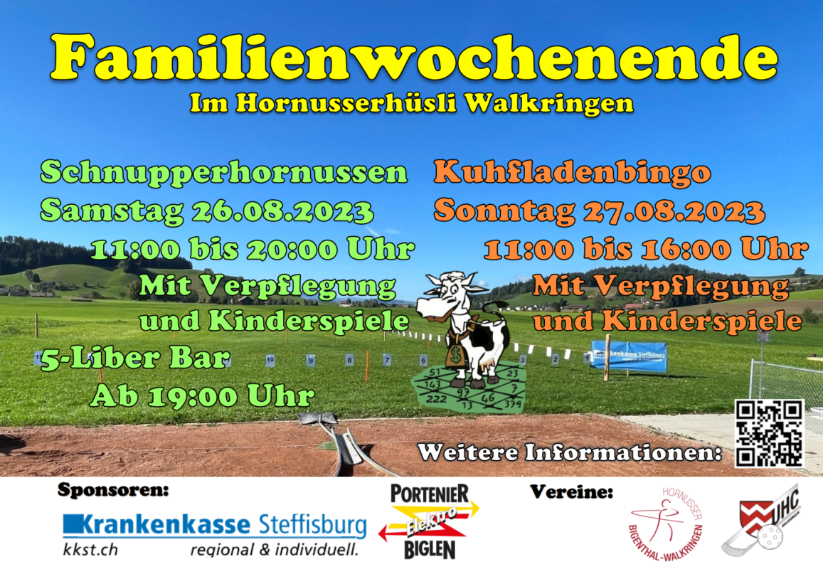 Die Hornussergesellschaft Bigenthal-Walkringen lädt Dich zu unserem Familienwochenende ein.