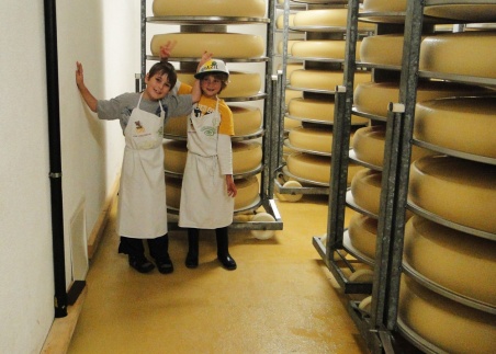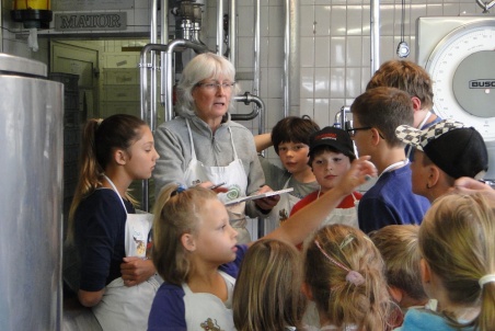 Da die Kinder noch aufeinander warten müssen, bevor es weitergeht, bleibt Zeit für ein paar Fragen: Gefällt es ihnen bei Glausers in der Käsi? Alle sind sich einig: Es ist toll. Was haben sie bis jetzt gemacht? „Wir waren im Keller, wo es ganz fein nach Käse gerochen hat“, sagt ein Kind. „SEHR fein“, ergänzt ein anderes begeistert. Und schon bieten zwei Buben an, nochmals kurz durch den Keller zu führen. Dora Glauser ist einverstanden.