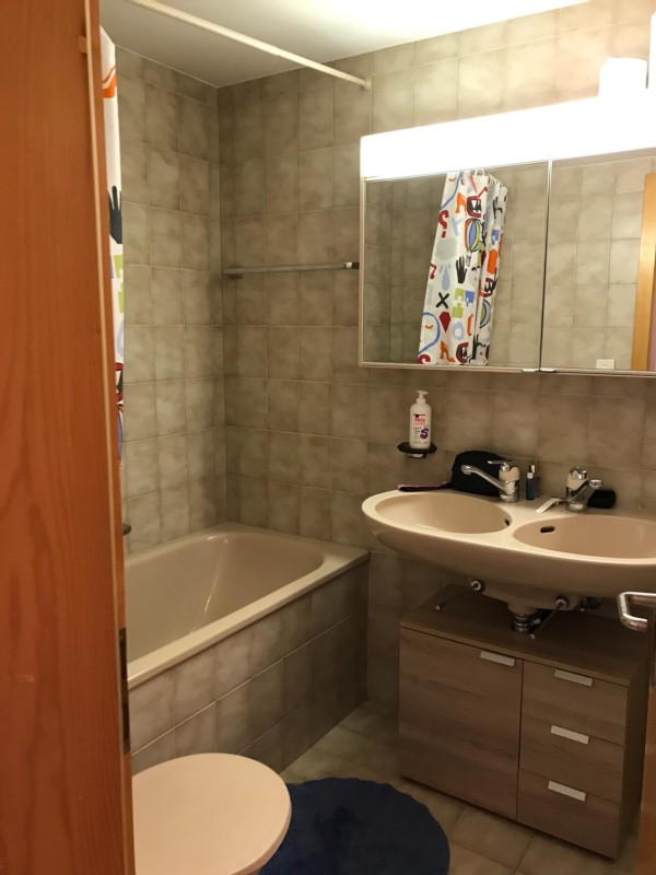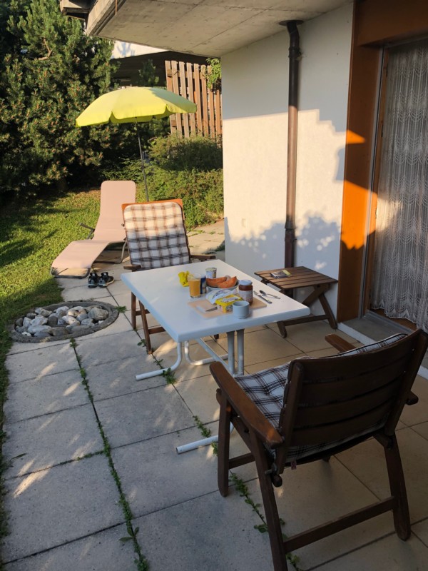 Gut eingerichtete Wohnung für max. 4 Pers., Parterre, grosser Sitz-Rasenplatz südseitig, grosser Kinderspielplatz, Einstellhallenplatz gratis. Neues Wellness-Zentrum mit Solbad in nächster Nähe.