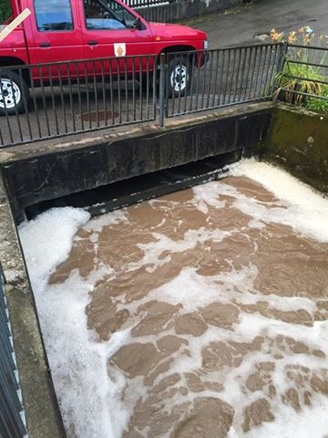 Als die Feuerwehrleute den Sammler erreichten war die kleine, heftige Gewitterzelle bereits vorbeigezogen. Der Sammler war zwar noch mit Geschiebe und viel Schaum auf dem schmutzigen Wasser gefüllt, der Wasserpegel war aber bereits wieder am sinken.