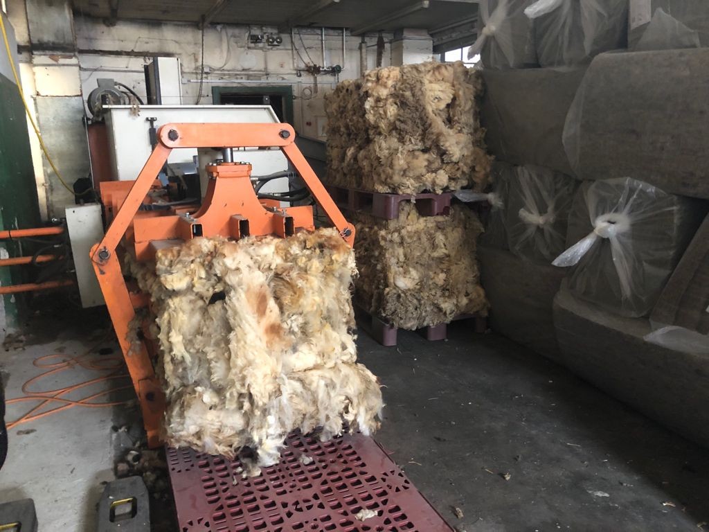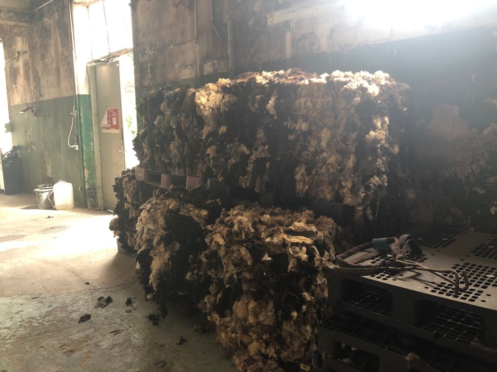 Die Fissco liegt etwas abseits am Waldrand von Enggistein, die alten Industriebauten sind verwinkelt und verwittert. Im Lagerraum direkt an der Einfahrt stapelt sich Schafwolle und riecht - nach Schaf.
