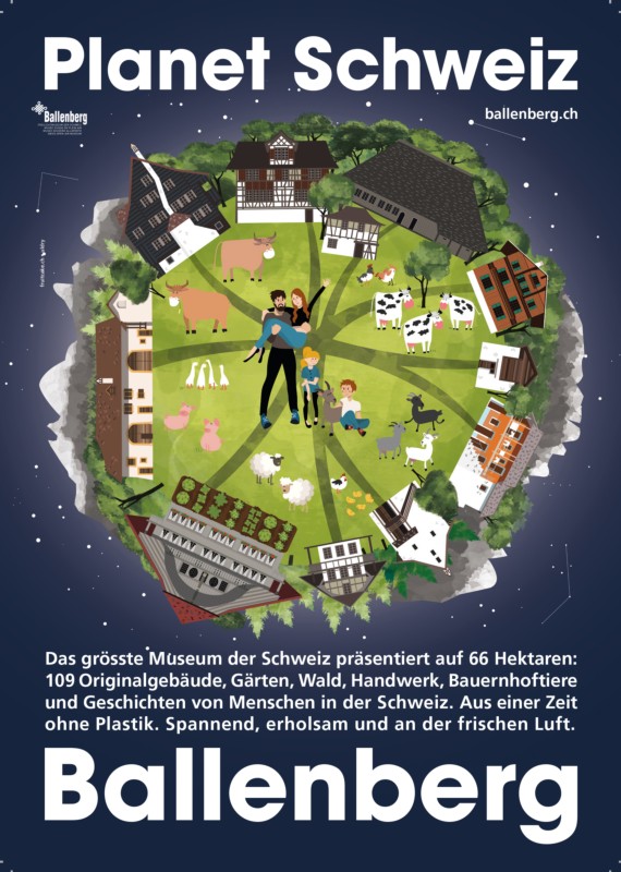"Entstanden sind zeitlose und dekorative Eyecatcher, welchen sich das Auge nicht entziehen kann", schreibt Fruitcake in einer Medienmitteilung. Fruitcake positioniere den Ballenberg darauf plakativ als das, was er unter den Schweizer Museen sei: Ein Planet.