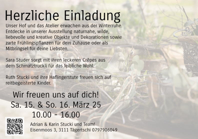 Entdecke in unserer Ausstellung naturnahe, wilde, liebevolle und kreative Objekte und Dekorationen sowie zarte Frühlingspflanzen für dein Zuhause oder als Mitbringsel für deine Liebsten.