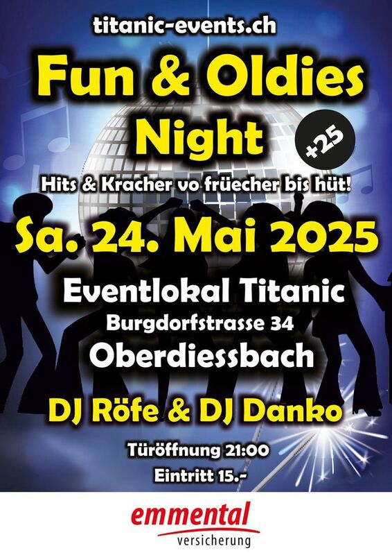 Unser Fun & Oldies Event ist eine Mischung aus Oldies, Party Kracher bis zu aktuellen Hits.