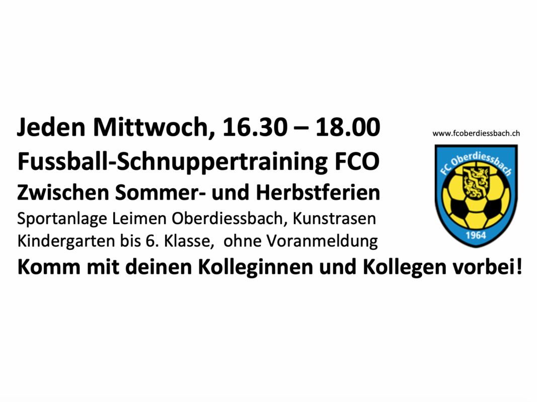 Zwischen den Sommer- und den Herbstferien, jeweils von 16:30-18:00 Uhr, findet auf dem Sportplatz Leimen ein Fussball-Schnuppertrainig für interessierte Juniorinnen und Junioren statt. Alle fussballbegeisterte Schülerinnen und Schüler (Kindergarten bis zur 6. Klasse) sind während dieser Zeit herzlich bei uns Willkommen. Eine vorgängige Anmeldung ist nicht notwendig.