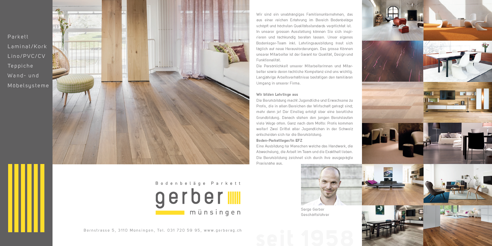 In unserer grossen Ausstellung (über 800m2) können Sie sich inspirieren und fachkundig beraten lassen. Unser eigenes Bodenleger-Team inkl. Lehrlingsausbildung freut sich täglich auf neue Herausforderungen. Das grosse Können unserer Mitarbeiter ist der Garant für Qualität, Design und Funktionalität.