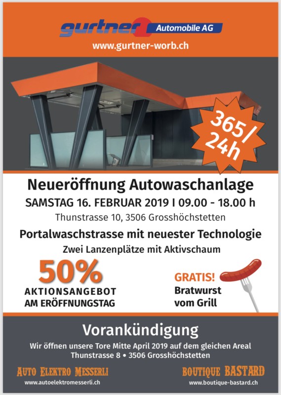 ** 16. FEB. 2019 NEUERÖFFNUNG AUTOWASCHANLAGE IN GROSSHÖCHSTETTEN**