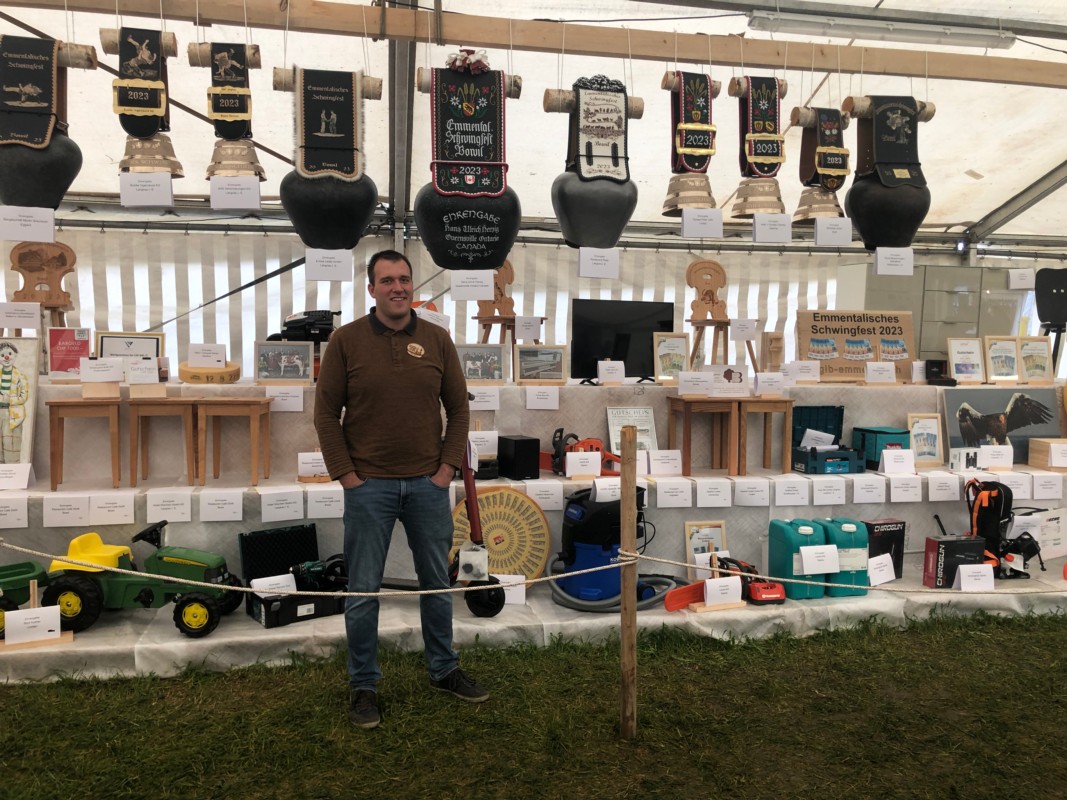 Im Gabentempel wählen die Schwinger, absteigend nach Rang, einen Preis aus. Im OK des Emmentalischen Schwingfests war dafür Adrian Gäggeler, selber aktiver Kranzschwinger, zuständig. BERN-OST hat ihn gefragt, wie er den Gabentempel gefüllt hat, welche Preise beliebt sind, und was er selber schon gewonnen hat.