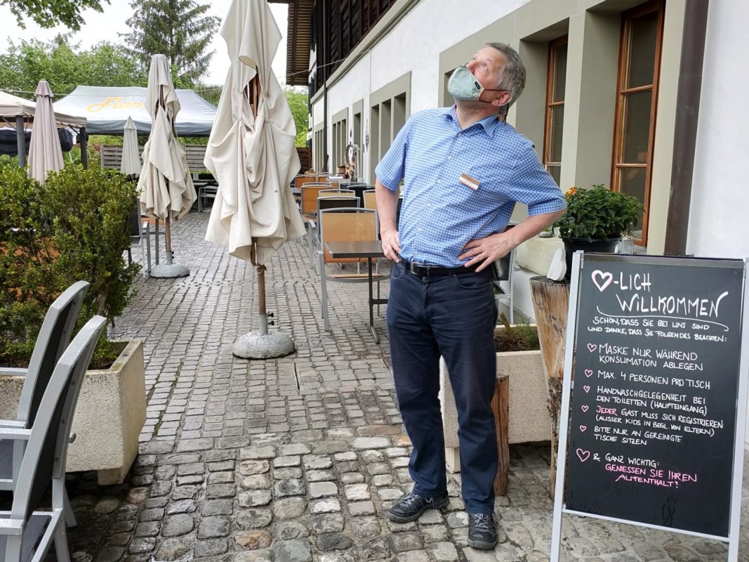 Seit drei Wochen dürfen draussen wieder Gäste bewirtet werden. Kipfers Bilanz ist durchzogen: "Es ist eine Berg- und Talfahrt. An sonnigen Tagen läuft es sehr gut. Die Gäste sind zufrieden und schätzen das. An Regentagen ist tote Hose. Das ist nicht einfach."