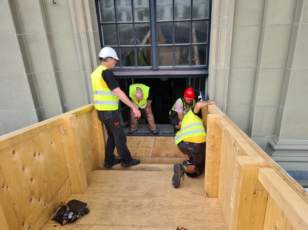Der Grosshöchstetter Gemeinderat Magnus Furrer (FWG) konnte mit seiner Firma, der Zimmerei "Aufholz", einen speziellen Auftrag ausführen. Es handelt sich um eine Holzbrücke, über welche man vom Berner Bahnhofplatz durch ein Kirchenfenster in die Heiliggeistkirche gelangt.