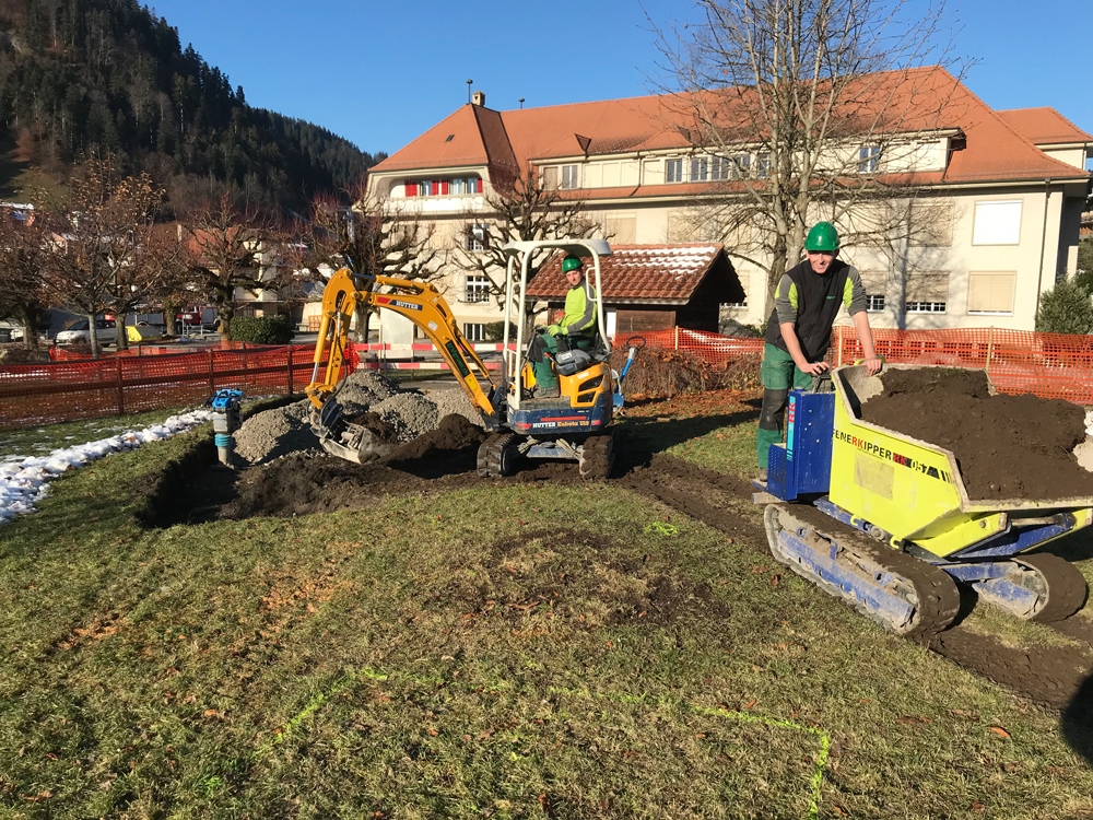 Der Platz soll am 21. April eröffnet werden. Und noch ein niedliches Detail zum Schluss: Vor Ort für die Firma Graf sind momentan Polier Stefan Kropf und Lehrling Ramon Sommer. Der 18-Jährige Sommer ist aus Oberdiessbach und habe auf dem Platz schon als kleiner Junge gespielt, verrät Simon Graf, sein Chef.