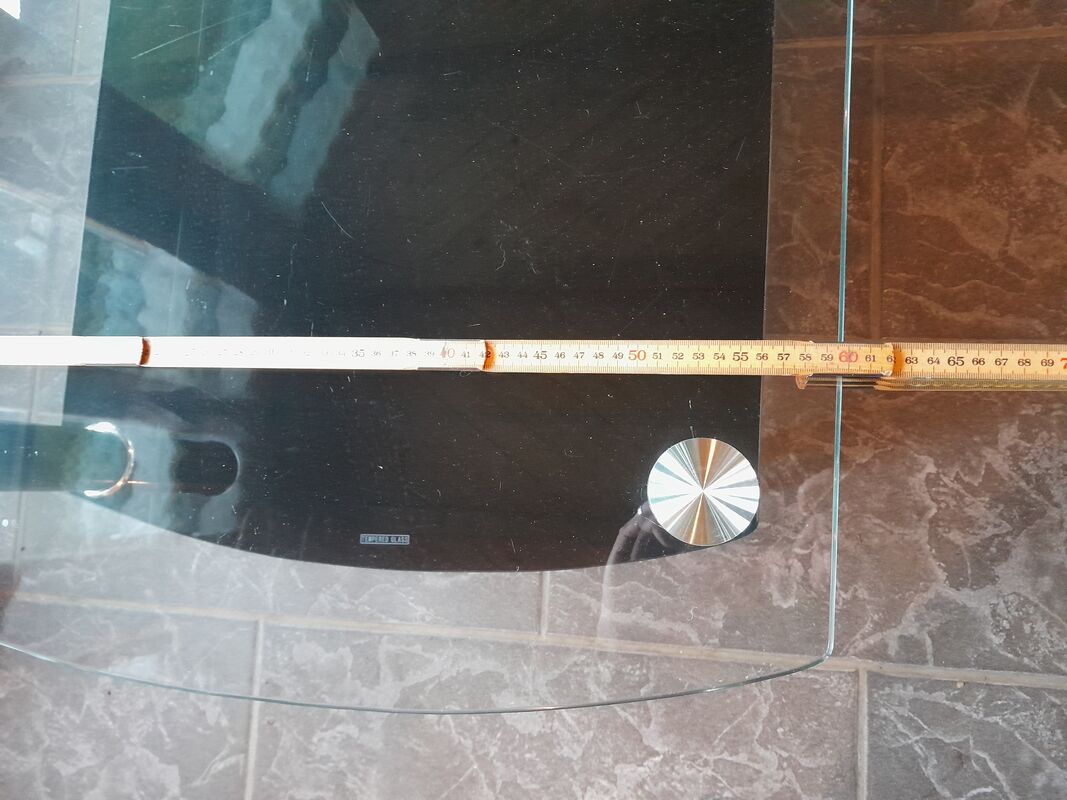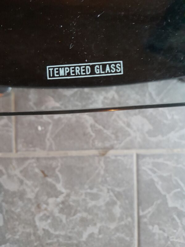 Die Beine sind verchromtes Kunststoff. Die beiden Glasplatten haben die Bezeichnung: TEMPERED GLASS. Dies bedeutet: gehärtetes Glas. Dies kann höheren Temperaturen und plötzlichen Temperaturschwankungen standhalten, ohne zu brechen.