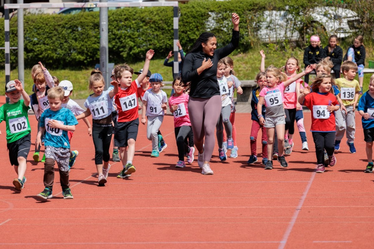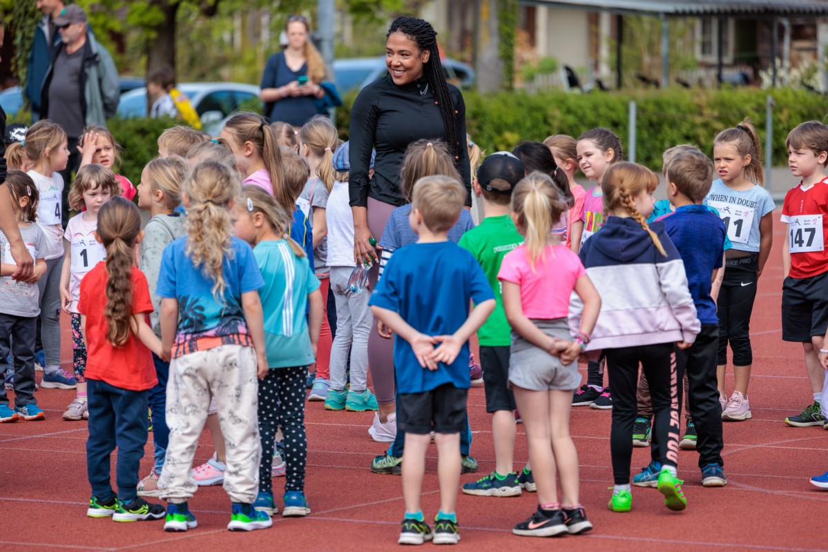 Eines der Highlights war die Anwesenheit von Muswama Kambundji, der Berner Sprinterin. Im Interview gab sie Einblick in ihr Sportlerinnenleben und begeisterte die Kinder beim gemeinsamen Aufwärmen. Als krönenden Abschluss erhielt jedes Kind eine Autogrammkarte mit persönlicher Widmung.