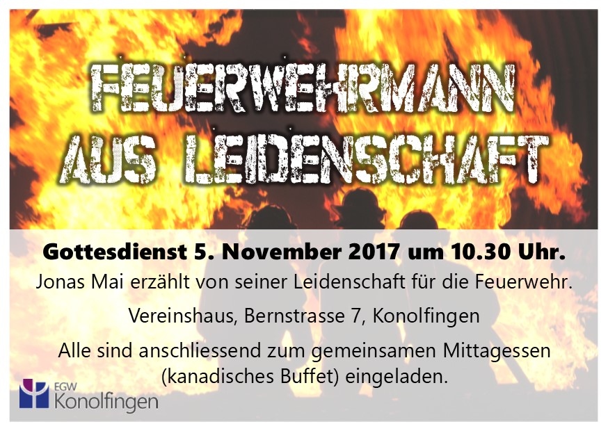 Jonas Mai erzählt von seiner Leidenschaft für die Feuerwehr. Anschliessend an den Gottesdienst essen wir gemeinsam Zmittag und teilen, was alle mitgebracht haben.