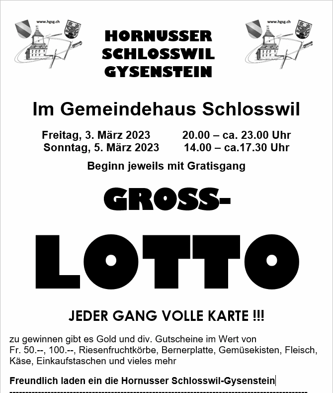 Freundlich laden ein die Hornusser Schlosswil-Gysenstein