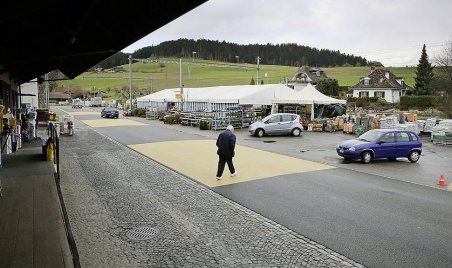 Die gelben Markierungen zwischen Landi und Bahnlinie sorgten in Grosshöchstetten für Ärger. Jetzt sind sie weg und neue Lösungen für mehr Verkehrssicherheit gesucht.