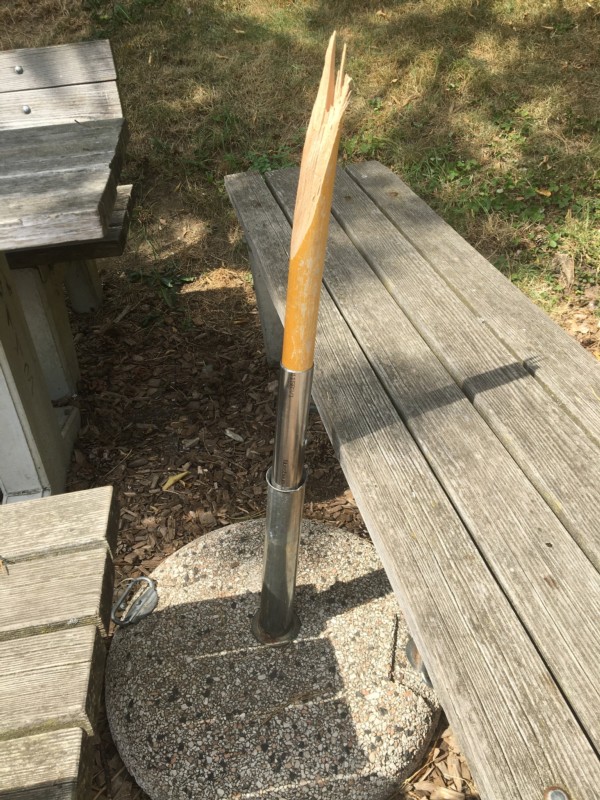 Bühler geht davon aus, dass von der Sitzbank oder dem Tisch aus am Schirm herumgeklettert wurde und dieser dann abgebrochen ist und mitgenommen wurde.