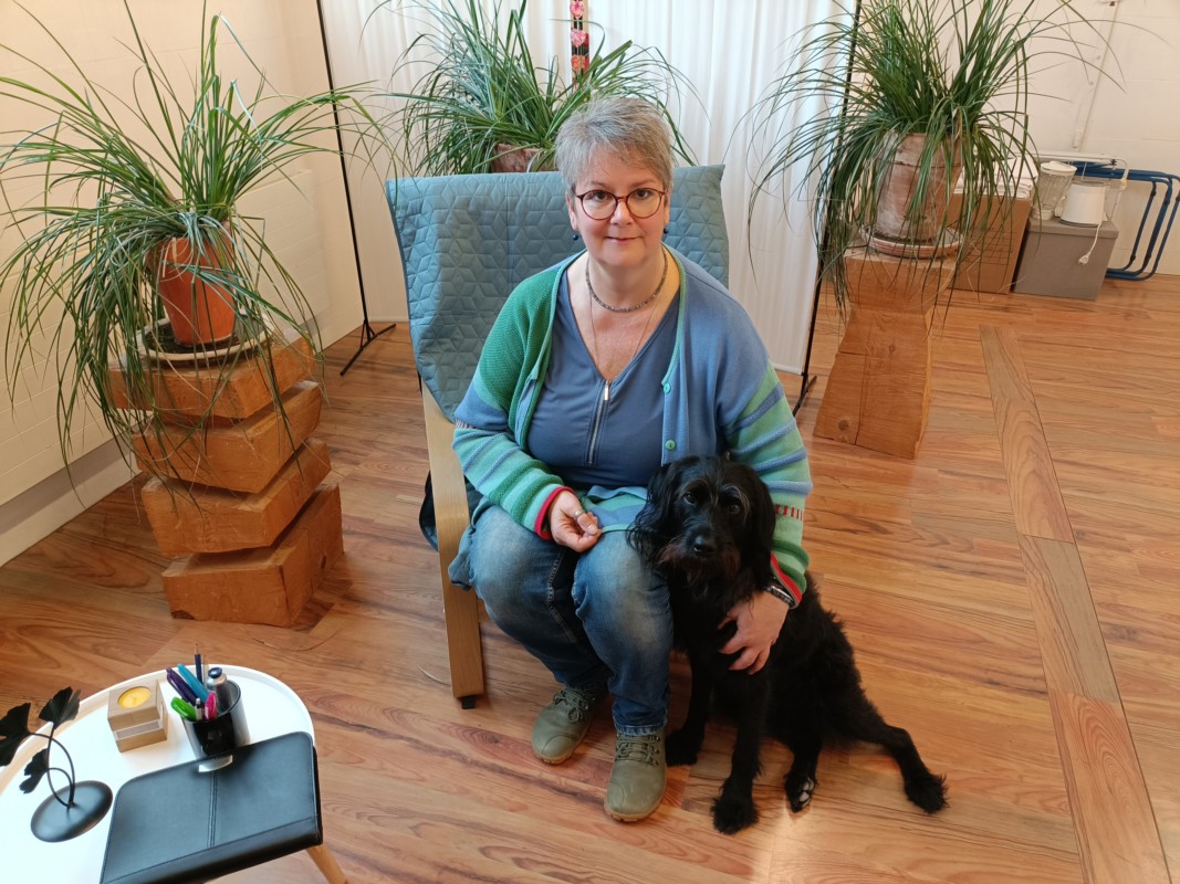 Treuherzig blickt Hund Boo zu Claudia Lerch auf. Sie streicht ihm über den Kopf. Der freundliche Labradormischling ist eines der Dinge, die sich im Leben der heute 59-Jährigen geändert haben, seit sie ihren Alltag umgekrempelt hat und sich auf ihr «Atelier zum Glück» konzentriert.