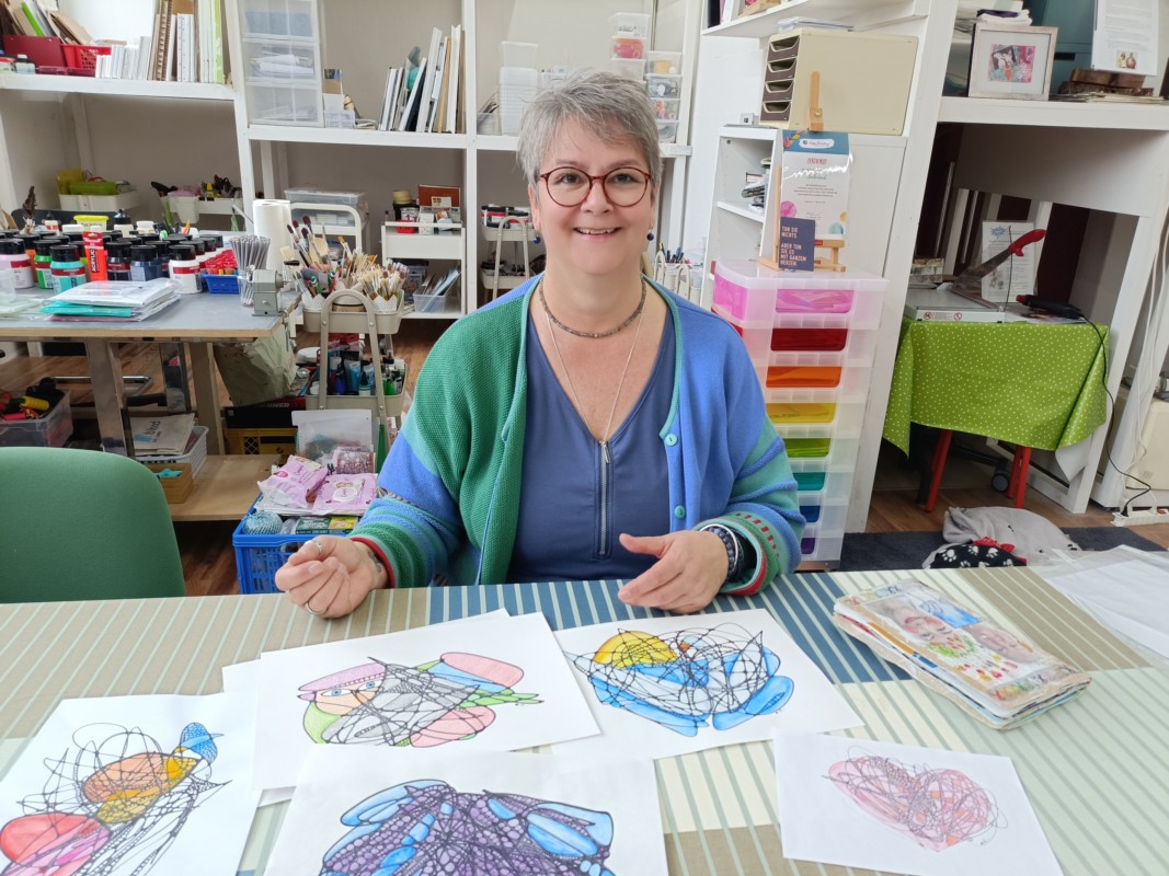 Dann kam Corona. In dieser Zeit fanden die Kurse nur online statt, dafür machte Claudia Lerch selbst den Aufbaulehrgang systemische Neurobilder in «Neurodings»: Das ist eine zertifizierte Methode, bei der scheinbar ziellose Linien harmonisiert, verstärkt, koloriert und schliesslich analysiert werden. «So kann man Themen, die einen beschäftigen, stressen oder blockieren neurokreativ verarbeiten», erklärt sie. «Sehr vereinfacht gesagt, kann man damit eine Verstopfung lösen, damit alles wieder frei fliesst.»