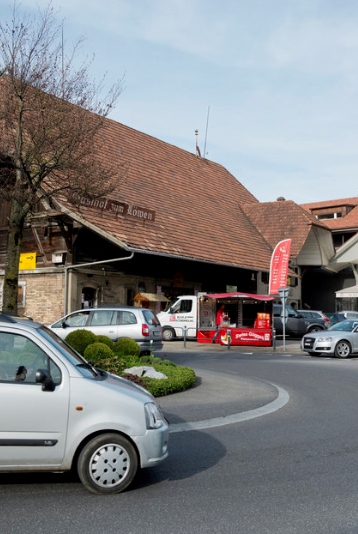 Das Herz von Grosshöchstetten ist rund und ächzt. Es pumpt Autos und Lastwagen im Sekundentakt in alle Richtungen. Nach Thun, nach Langnau, nach Burgdorf und Bern. Wir stehen am Dorfkreisel. Wie immer mittwochs wartet der «Royal Swiss Güggeli»-Wagen vor dem alten Löwen. Früher thronte an dieser Kreuzung eine grosse Linde, auf dem Wappen von Grosshöchstetten ist sie verewigt. Die Linde wurde gefällt, nun steht in der Kreiselmitte ein etwas jämmerlicher Baum. Vermutlich sind seine Blätter während des späten Frosts im Frühling erfroren.