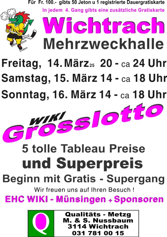 Grosslotto EHC WIKI-Münsingen mit Sponsor Metzgerei Nussbaum Wichtrach