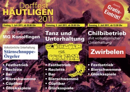 Nach Abschluss der 50-Jahr-Feier müssen sich die Festfreudigen nicht langweilen. Im Programm steht: "Möglichkeit, nebenan am traditionellen Dorffest Häutligen zu verweilen."