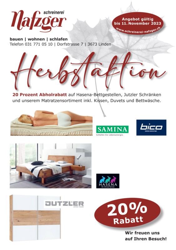 10.11.2023 bis 13.11.2023 Herbstaktion auf Schlafsysteme und sämtliche Handelsprodukte
