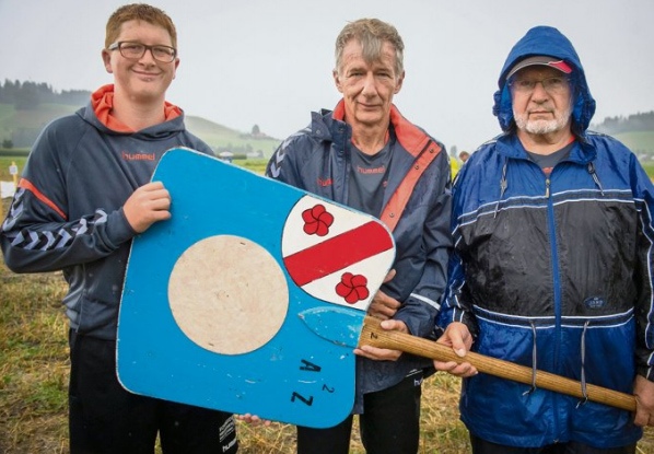 Die Organisatoren entschlossen sich zum Abbruch; pro Team kam nur einer statt zwei Schlagdurchgänge in die Wertung. Den Hornussern von Krauchthal-Hub C kam dies entgegen. Sie hatten nur zwei Nummern kassiert. Eine sehr gute Leistung für das Team mit Hornussern von 11 bis 76 Jahren.